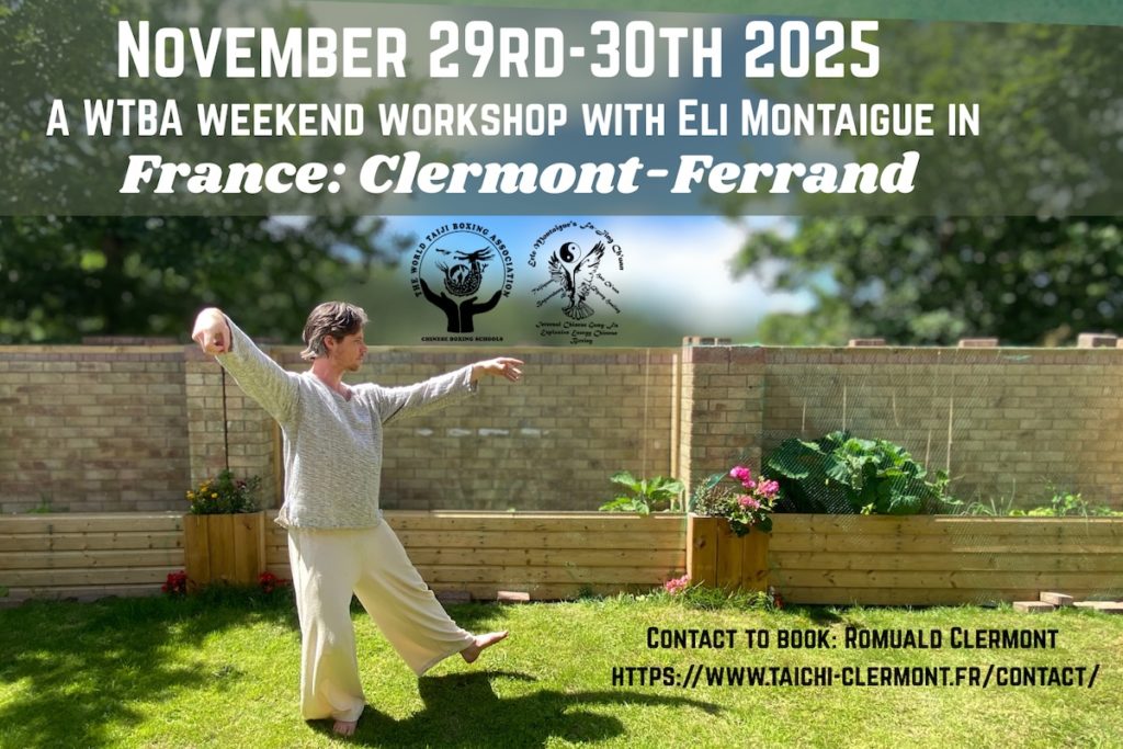 L’Association Clermontoise de Tai Chi Chuan accueillera Eli Montaigue, instructeur en chef de la World Taiji Boxing Association, pour un stage de Tai Chi Chuan dans le Puy-de-Dôme les samedi 29 et dimanche 30 novembre 2025.